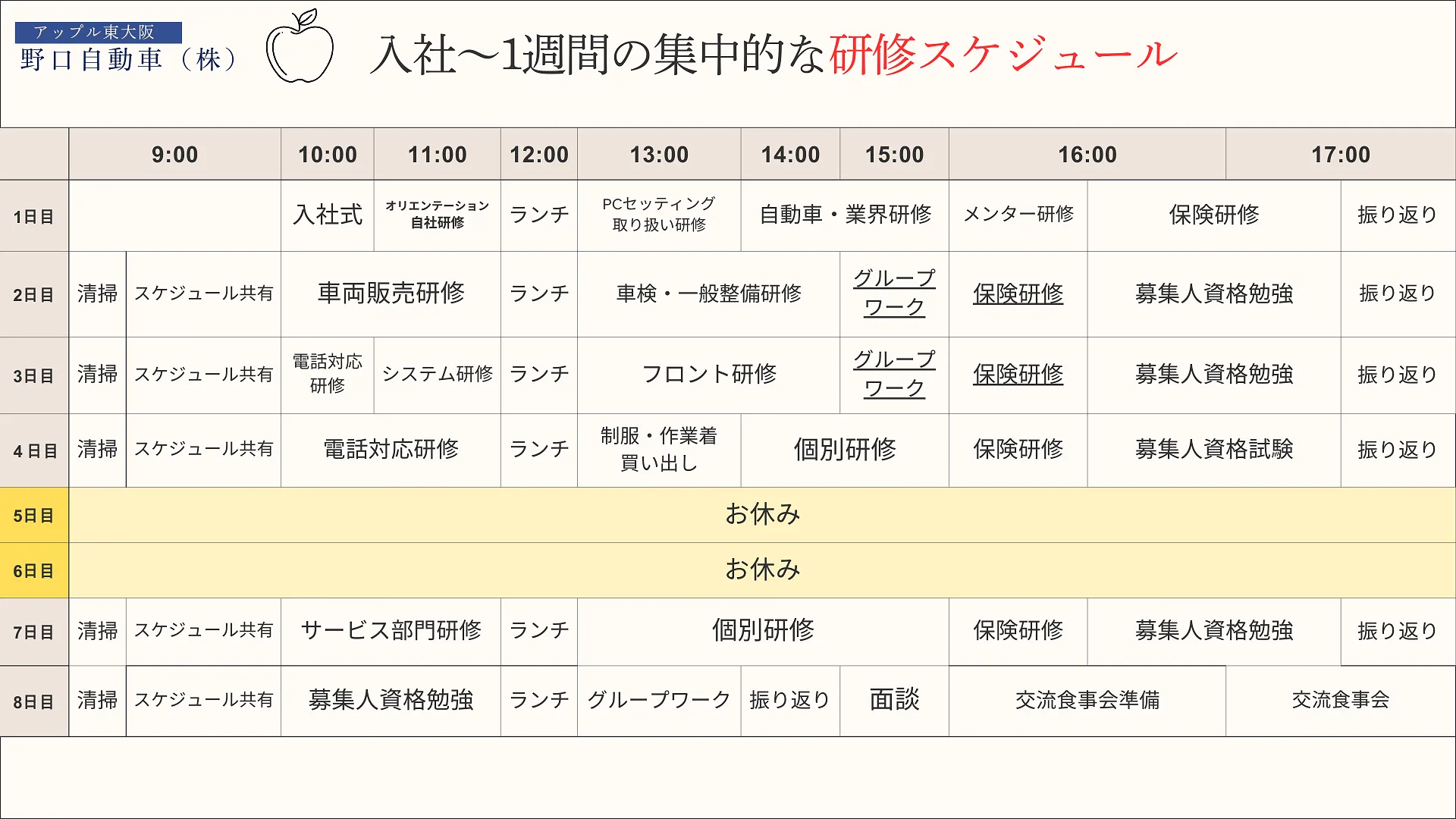 目的:当社で働く上での考え方や目標、理念などを学ぶ